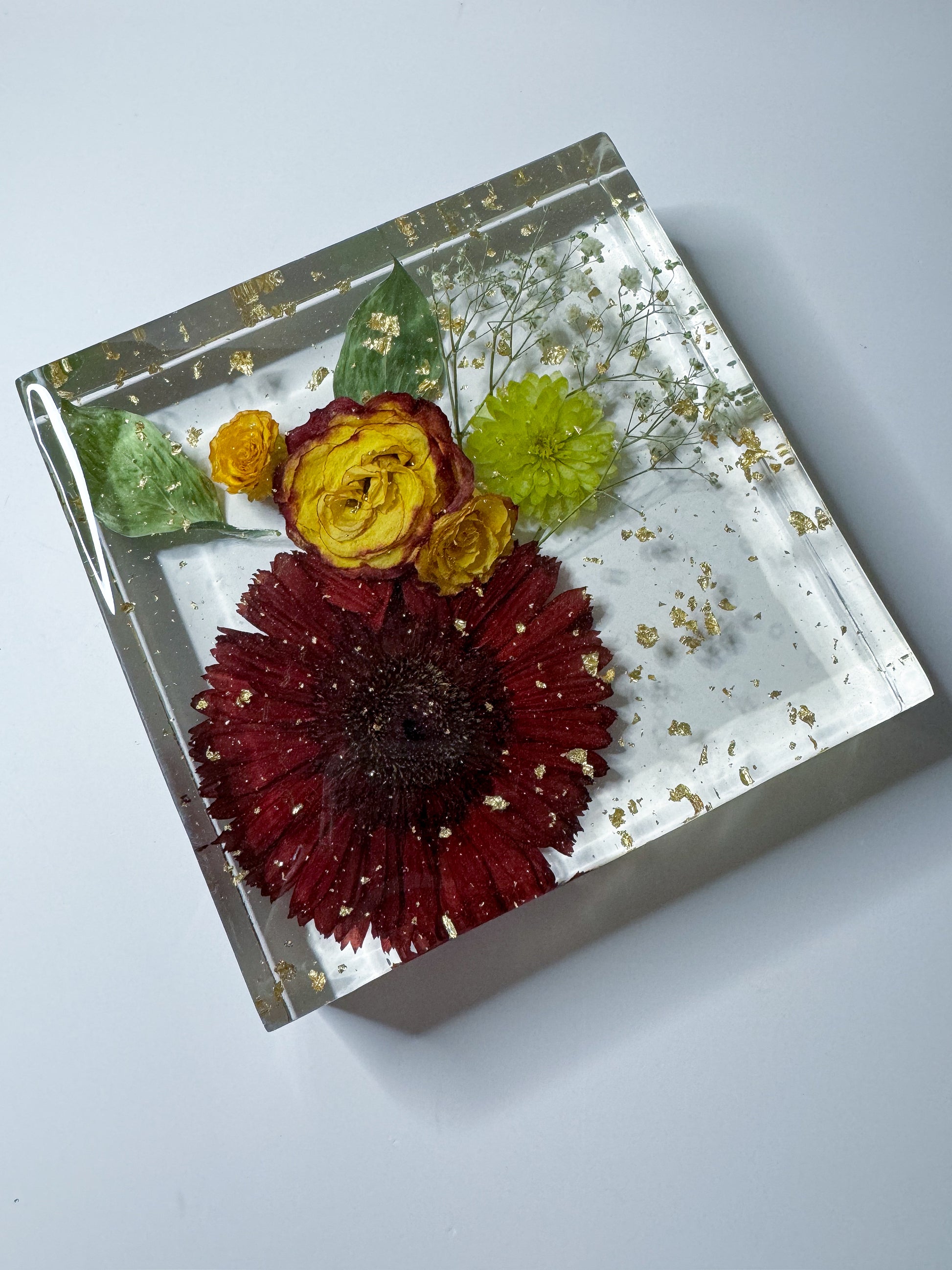 Resin flower preservation blocks are specialized blocks made from resin that are used to preserve flowers and other botanical specimens. The process of preserving flowers in resin involves carefully encasing the flowers in the resin material, which acts as a protective barrier, preventing decay and maintaining the flowers' natural appearance. This allows you to create stunning and long-lasting floral arrangements that can be used for various decorative purposes, such as paperweights, coasters, or display pieces.