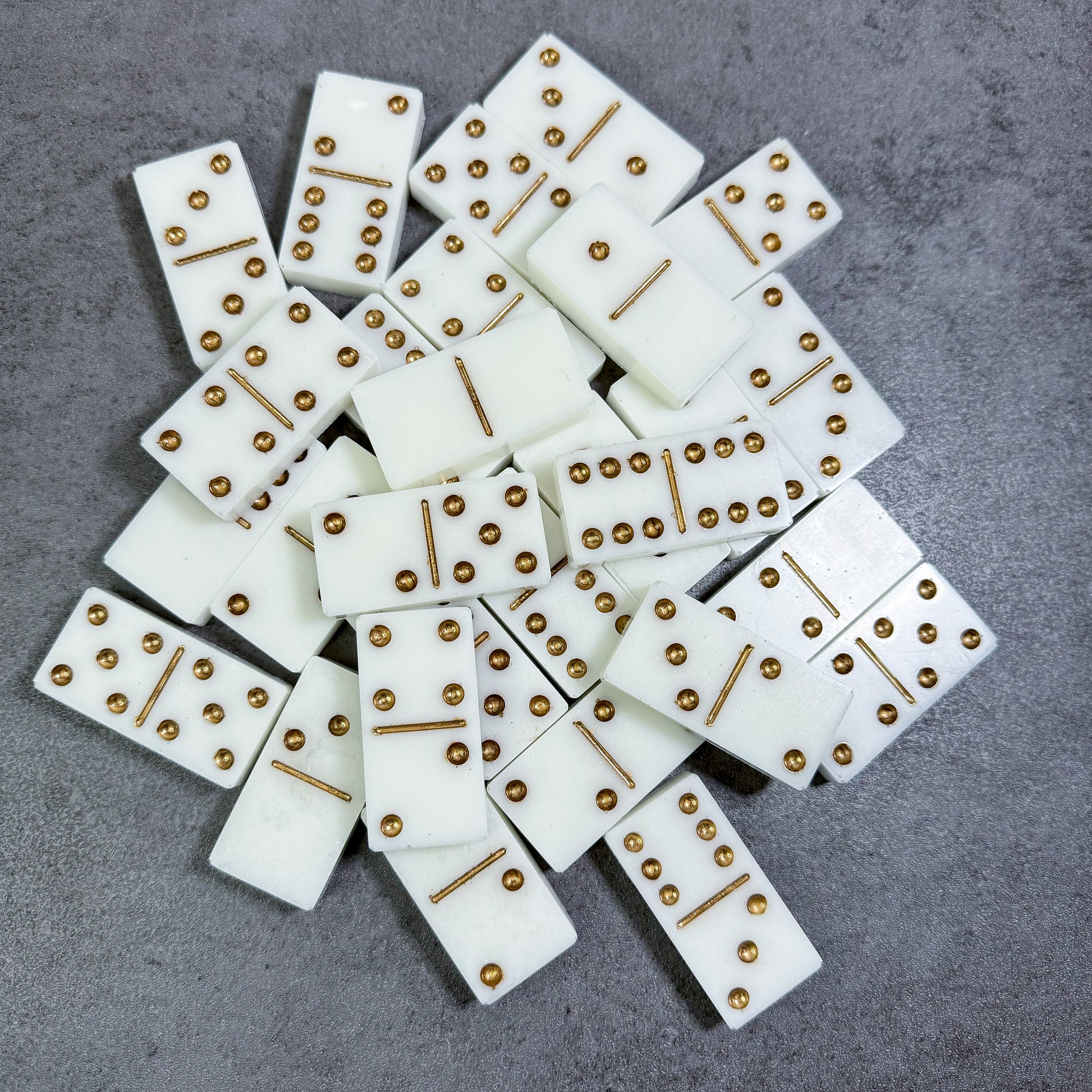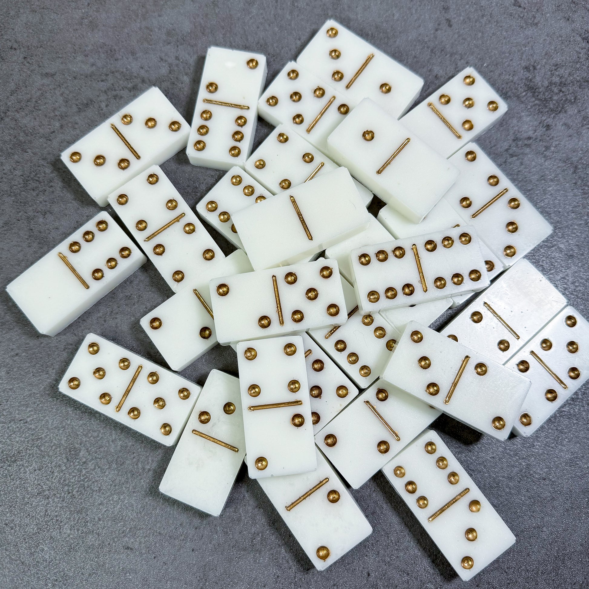 Several Domino Sets in this collection to choose the one you prefer. Elegance and Shine combined in many ways. A resin domino set combines functionality with aesthetic appeal, providing both the tools for gameplay and a visually pleasing addition to any space.